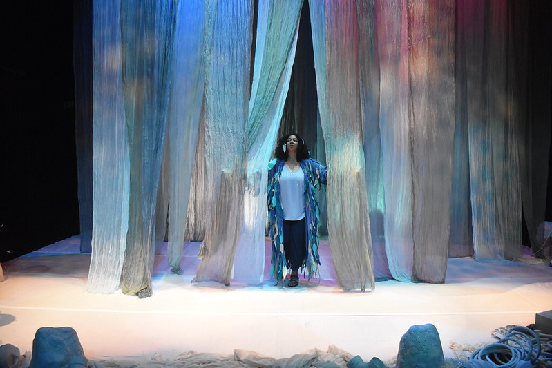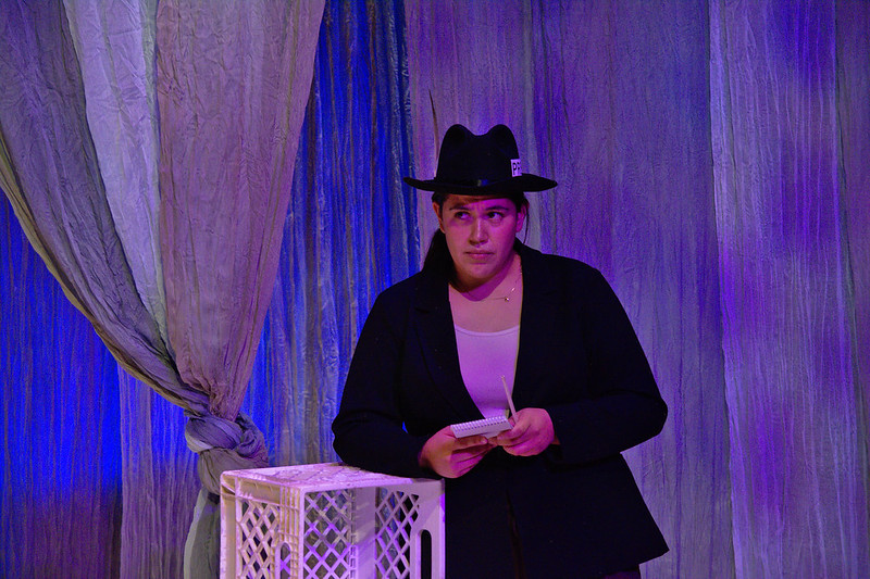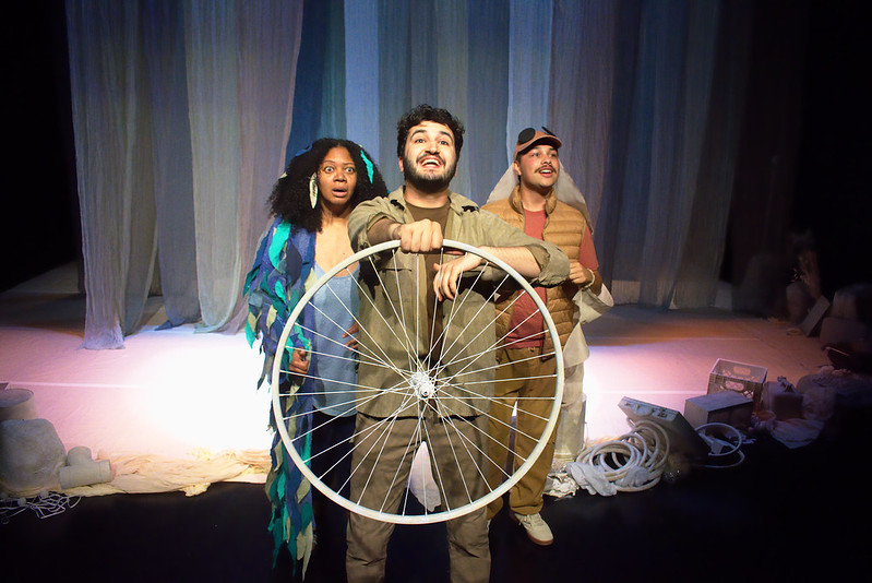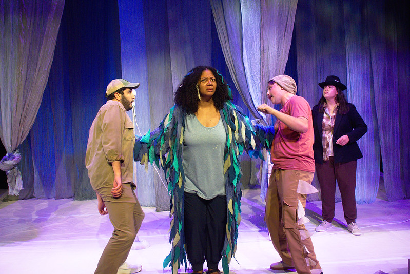 Alec Kalled and Isabella Reeder round out the quartet, wearing many hats throughout the show. Faatau, Kalled, and Reeder keep the audience on their toes and excited before they even start their lines. Each of their characters are distinct, bringing a new tone to the performance. Reeder as North Arm is especially nostalgic and quirky, the spunky grandma to Cameron’s angst; their scene exudes a welcome tenderness during one of the lowest moments in the performance. Kalled also stands out as Scientist and Mr. Representative, both unique. Kalled gives Scientist a lovably awkward, goofy demeanor, explaining to the audience some of the issues that are depleting the lake with gusto. Kalled also gives zeal to Mr. Representative, though with just a touch of “uncanny valley” that makes everything feel almost farcical. No one in the cast let the energy drop for even a second, keeping the audience engaged and involved in the story for the entirety of the performance. The cast coaxes a curiosity out of the audience without triggering defensiveness or shame, inviting the audience to follow that curiosity after the performance to learn more about this pressing issue.