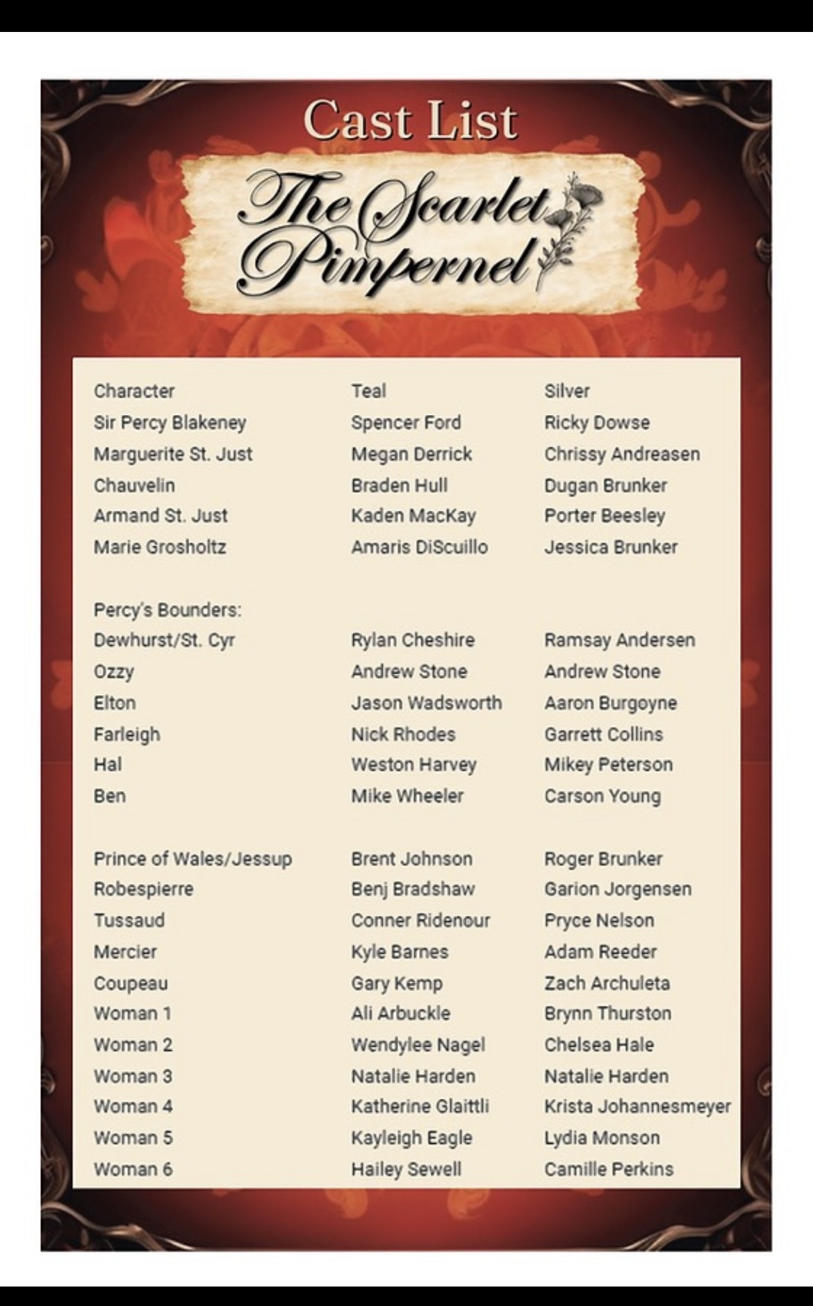 The elusive Scarlet Pimpernel has appeared again- this time at a modest but fiercely loved community theater in Kaysville, Utah, The Hopebox Theatre. This venue is no “humble English flower”- codirectors Becca Rhodes and Spencer Bowden have made certain of that. What they’ve created may well be the most outstanding production of The Scarlet Pimpernel ever to grace a Utah stage. A bold claim, yes- but one well worth investigating.
