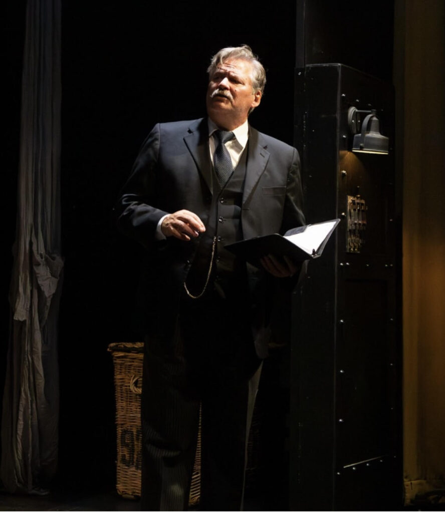 Matching Hohl’s experience stride for stride is Lowell as Arthur Kipps. Lowell is new to this production and his excellent elocution and enunciation are unequaled. Every word is perfectly projected and crystal clear. His Kipps is believable, sympathetic, and quietly haunted. The slow burn of trauma, of a man who, like the audience, thought he was safe but quickly realises he isn’t, is grounded in Lowell’s carefully controlled performance. He doesn’t race into horror; he lives in it.