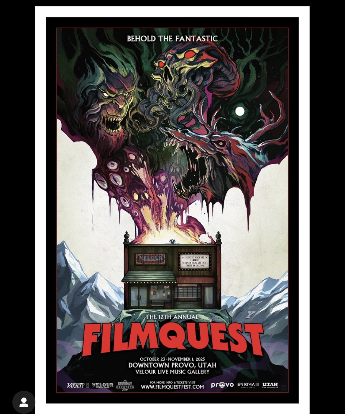 FilmQuest takes place in Provo, Utah, however, the films can be viewed online, giving a larger audience the opportunity to view these new and exciting pieces. Velour Live Musical Gallery in Downtown Provo is easy to get to on Provo’s University Avenue and is a lovely, comfortable space.