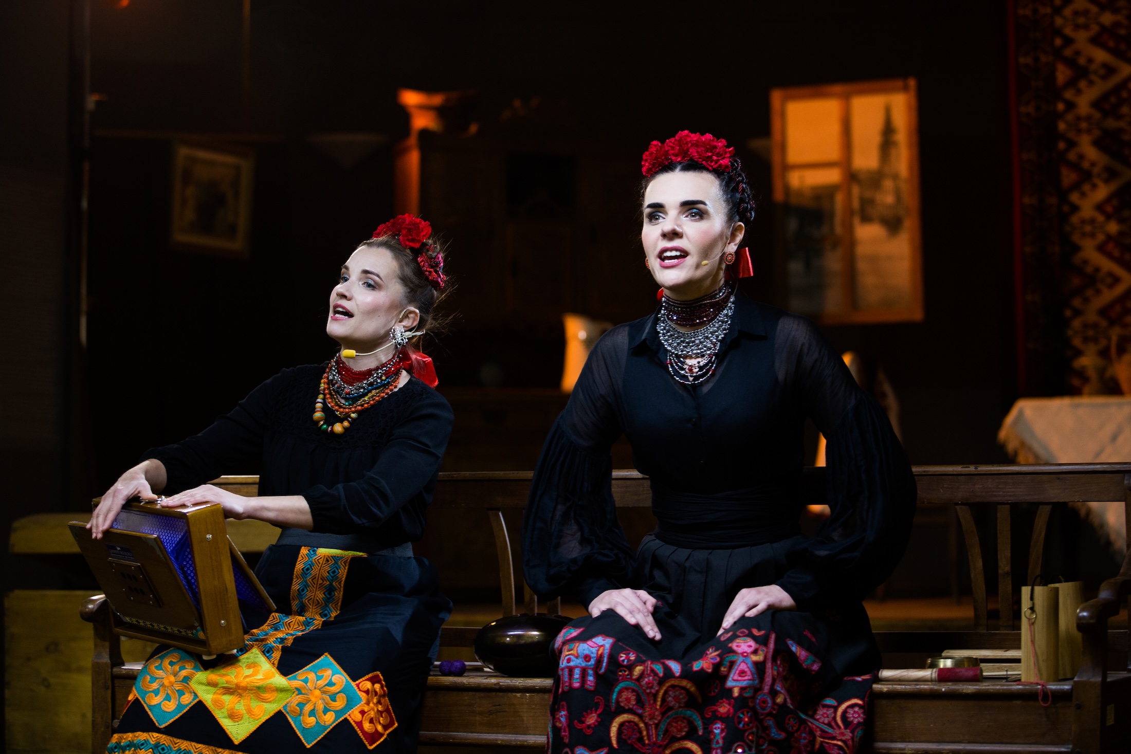 The harmonies bloom slowly, then all at once. Maria Oneschak’s (Vocalist, Artistic Director) voice cuts clean as a blade of cold wind. Natalia Rybka-Parkhomenko (Vocalist, Artistic Director) meets her with a deeper, duskier warmth that coils around the melody until it becomes a single, many-angled shape. When their voices slip into dissonance, the room tightens; when they reconcile, people exhale like they forgot they’d been holding anything at all.