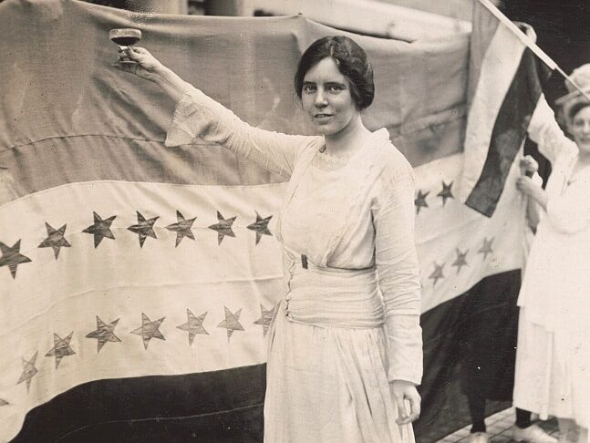 In the first number, “Let Mother Vote”, its jolly, snappy tune is counterpoint to the message: Women need the Vote! Women raised the country’s citizens, so they need a say in how the country is being run. They need power. A seat at the table. They need equality. A tense meeting between two strong women whose lives are dedicated to women’s equality begins the show. Carrie Chapman Catt, 53, a protégé of Susan B. Anthony, the world famous leader of the American woman suffrage movement, played by Merrill Peiffer represents a standard type of protest by persuasion, quiet insistence, and tenacity. Twenty-seven–year-old activist Alice Paul (Maya Keleher) is headstrong with bold ideas who insists that change must be big and happen immediately. Catt is a waning past, Paul is the future, as shown in “Finish the Fight.” These two characters are perfectly cast in every wit. Peiffer’s glistening notes hit the ceiling and beyond, an exquisite angel sending her message. Keleher stands on the solid ground of today and the future, and breathes and bleeds her character with so much precision, I could feel her ferocity and commitment.